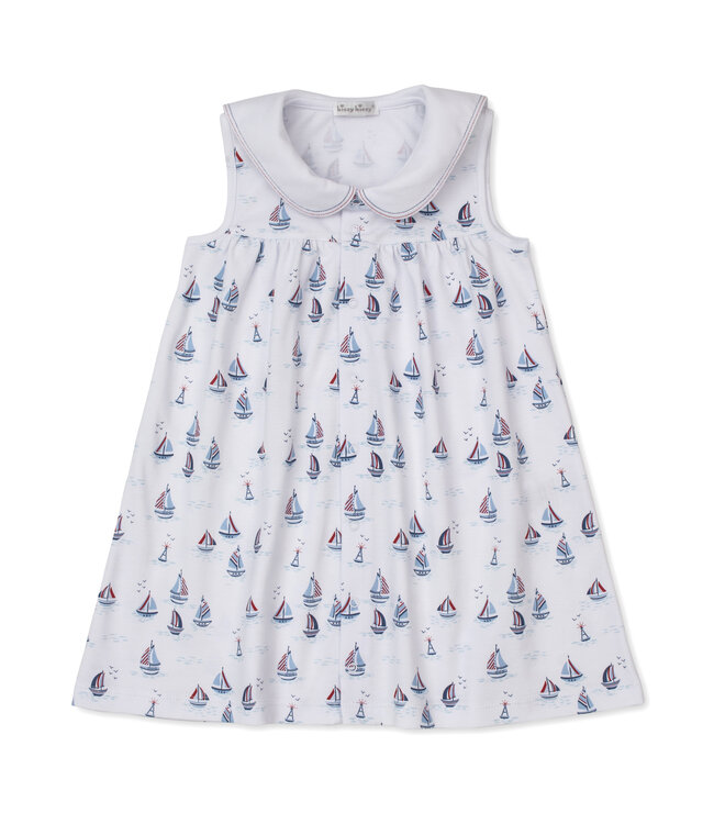Kissy Kissy's fun red, white, & blue regatta print patterns this darling toddler dress. Made from the softest Pima cotton for ultimate comfort for your toddler.