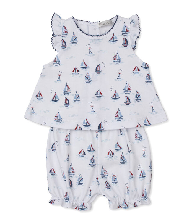 Playfully patterned with Kissy Kissy's red, white, & blue regatta print, this sunsuit set is made from the softest Pima cotton for ultimate comfort for your baby.