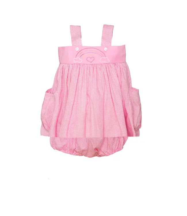 The Proper Peony's Romy Rainbow Bloomer Set has just the right amount of whimsy with the sweetest embroidery in the loveliest colors. Read more.