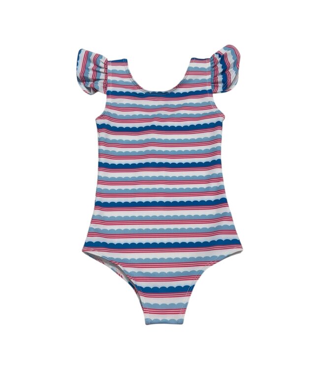 Your little lady will be making waves in Dear Georgie's most perfectly playful one piece. A classic silhouette combined with sweet flutter sleeves and fully lined to withstand hours of drip castle building and boogie boarding. It's got you covered all swim season long!