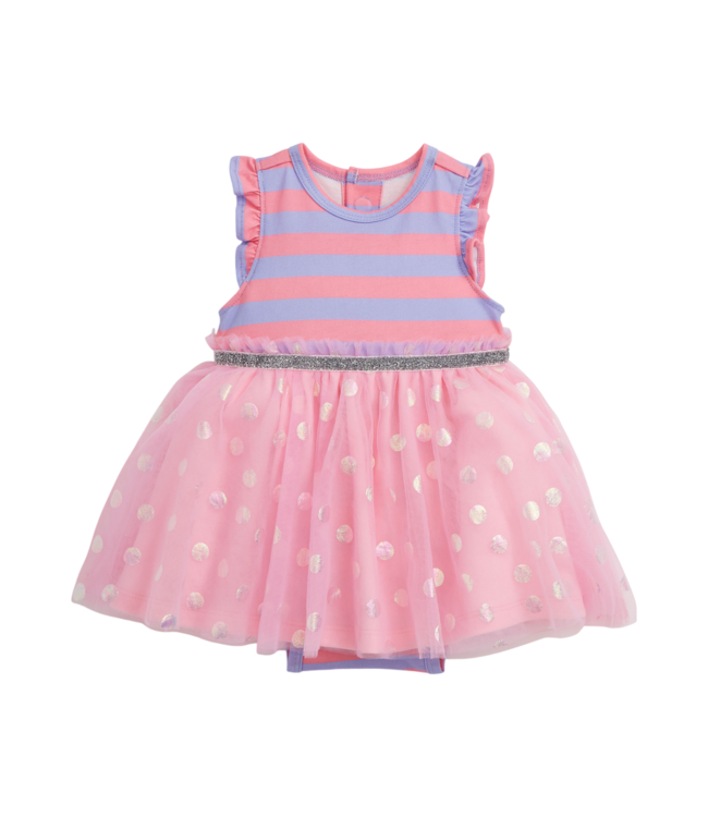 Magnetic Me's Tutu Dress combines celebration-ready style with time-saving magnets. The neckline opens wide to make dressing easy, while magnets at the bottom speed up changes. Crafted in cotton jersey with an elasticized waistband and foil tulle skirt.