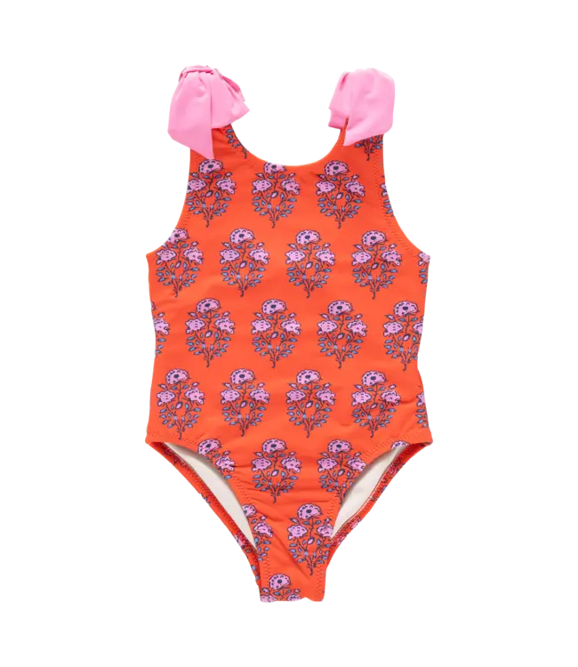 Bright and joyful, the Strawflower Shelly Suit is full of personality. Fixed pink bows at the shoulders add playful dimension, while the scoop neckline keeps the silhouette classic and easy to wear. A standout one-piece designed for sunshine-filled days.