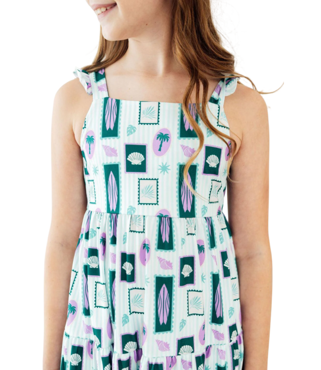 Mila & Rose's Maxi Dress is perfect for summer! The back has a cute cutout and a sweet ruffle on the shoulder. Super soft fabric stays bright wash after wash.