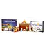 This item comes with a hardcover book, a 14-piece colorful wooden nativity set, and a wooden star.