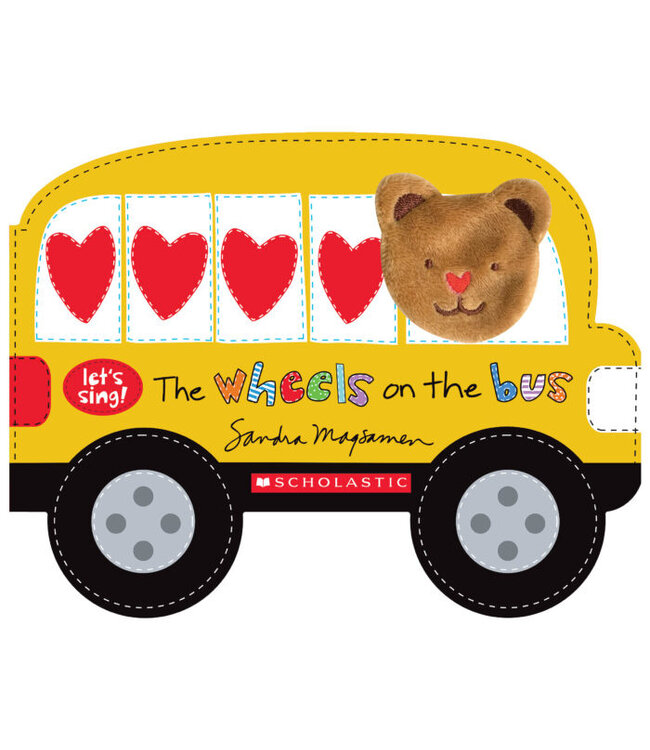 Hop on the bright yellow bus and sing and dance along! The bus drives all through the town to pick up new friends. A soft plush bear finger puppet pokes through to become a character on every spread, moving and dancing to the song.