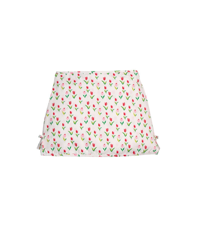 Little English's Tulip Valley Collection brings cheerful summer style with a sweet pink and red tulip print. The much-loved Colleen Skort is a classic Little English piece with built-in shorts, an elastic waistband, and tiny bow details on each side.