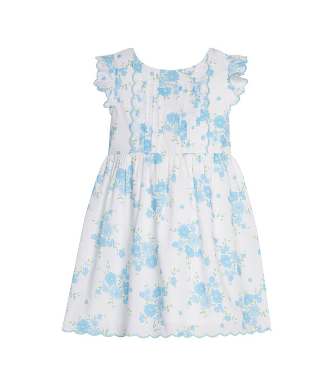 Little English's Turks Bay Collection brings light and airy summer style with an aqua-based floral, just perfect for summer vacations and beach days. Made from 100% cotton, the Mila Dress features sweet flutter sleeves, pintuck detailing at the chest, and aqua scalloped trim at the sleeves and placket. This charming tie-back dress will be your little girl's new favorite piece this season and baby sister can match in the Mila Bubble - Turks Floral.
