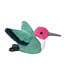 Twirlie is a speedy little hummingbird who loves zooming through imaginary gardens in a blur of bright happiness. Her bright teal plush feathers and beautiful pink head color give her a lively, magical presence. Light, soft, and perfectly cuddle-sized.