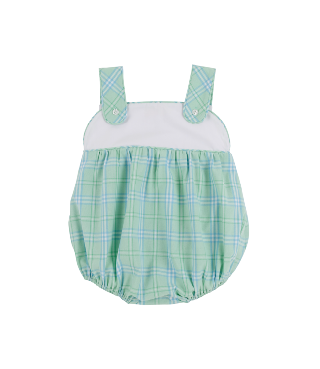 This dapper Bingham Bubble in Pelham Bay Plaid (Green) with Worth Avenue White is the outfit that makes your little gentleman look ready for anything from Easter brunch to family photos! The timeless green plaid brings preppy style while the bubble silhouette gives him room to explore and play comfortably. It's the kind of outfit that gets compliments everywhere you go and makes you want to take a million pictures—because when he looks this handsome, you can't help yourself!