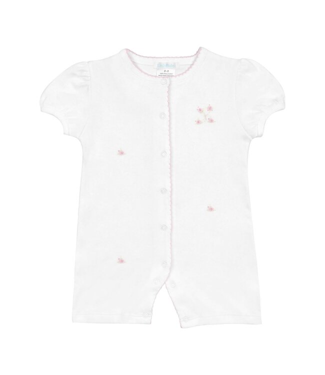 The LydaBaby White Romantic Roses Romper is crafted from ultra-soft 100% Pima cotton and features delicate embroidered pink rose details with sweet scalloped trim. A timeless, elegant piece designed for comfort and effortless baby style.