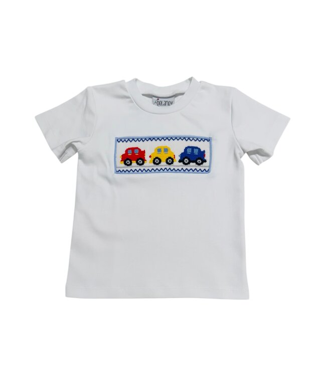 Delaney uses beautiful, colorful fabrics for all of its clothing, smocked and monogram, with meticulous hand embroidery in the smocking. Read more.