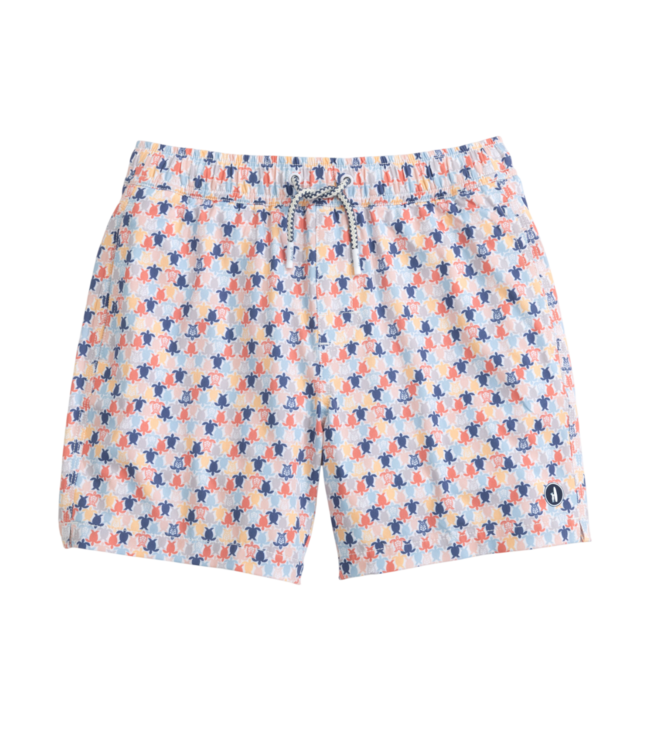 Johnnie-O's classic surf shorts for the young fella just got a fresh upgrade for spring in a wash of fun colors. He'll stay cool and comfortable from beach to boat with these fully lined elastic waist band swim trunks.
