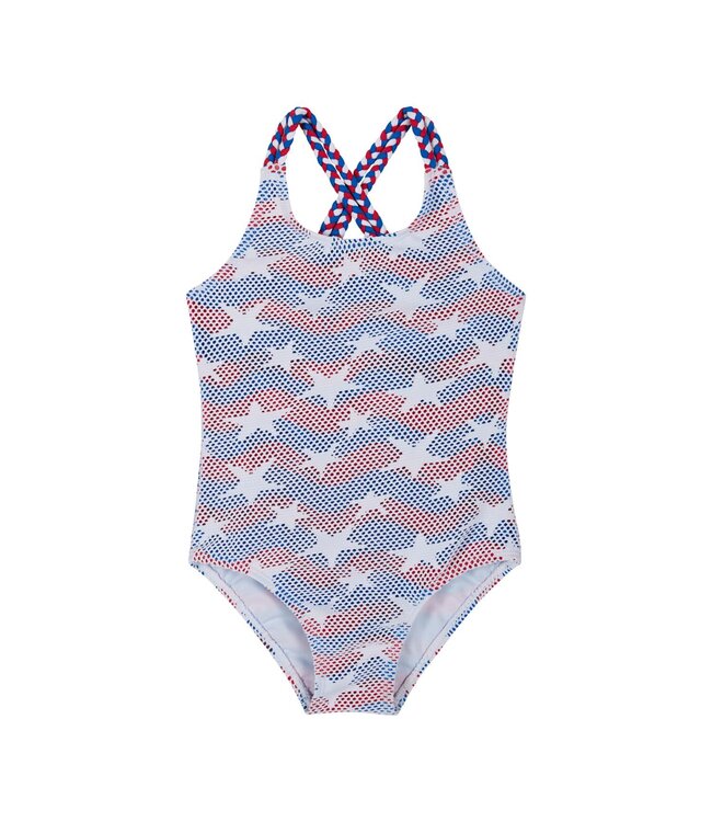 Andy & Evan White Stars Braid One Piece Swimsuit
