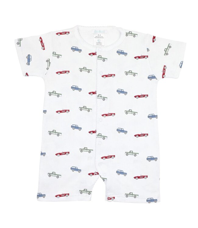 The LydaBaby White Summer Cars Romper is made from ultra-soft 100% Pima cotton and features a playful vintage car print in classic summer colors. Lightweight, breathable, and timeless—perfect for warm-weather days and everyday comfort.