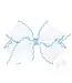 Wee Ones started with a solid medium bow, added contrasting edges, and used a plain wrap to create a classic and colorful look. This bow is sure to stay in her hair all day with the patented WeeStay™ no-slip hair clip.