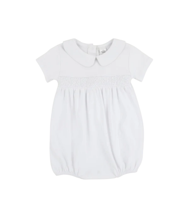 Beaufort Bonnet's classic Short Sleeve Banbury Bubble in Worth Avenue White is the timeless essential that makes dressing your little gentleman ridiculously easy and impossibly handsome! The clean 100% Pima Cotton Knit fabric brings fresh, preppy vibes while the bubble silhouette is classic and comfortable. It's the kind of piece that works for everything from baptisms to beach photos to Sunday brunch.